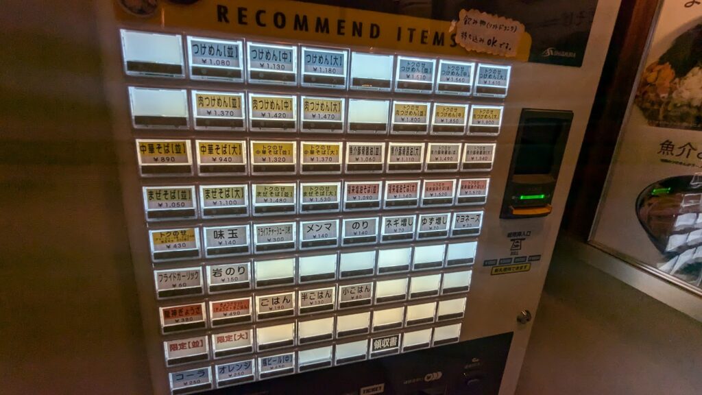 ココ最近は画像付きの食券機が増えていますすが、個人的にはこっちの方がワクワク感があって好きなんですよね。