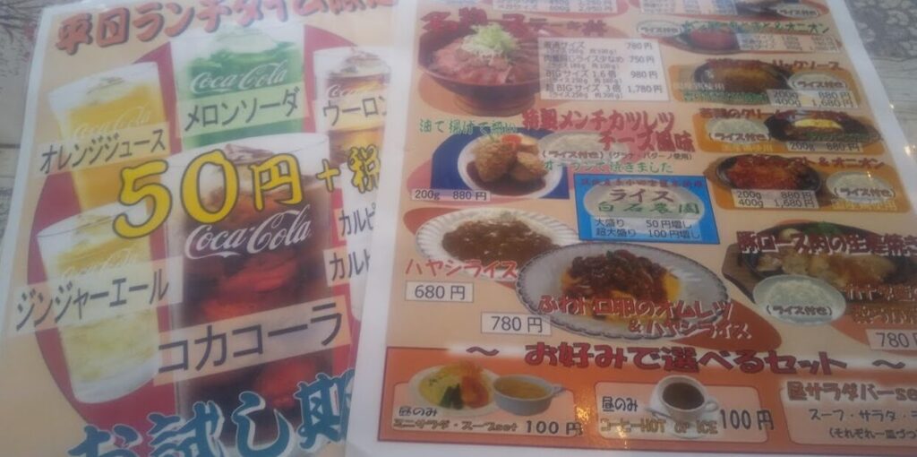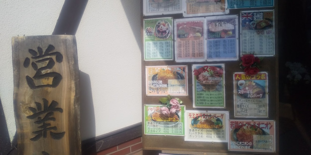 待ってる間にも注文するメニューが決定できるように、全てのメニュー表が貼り付けられています。