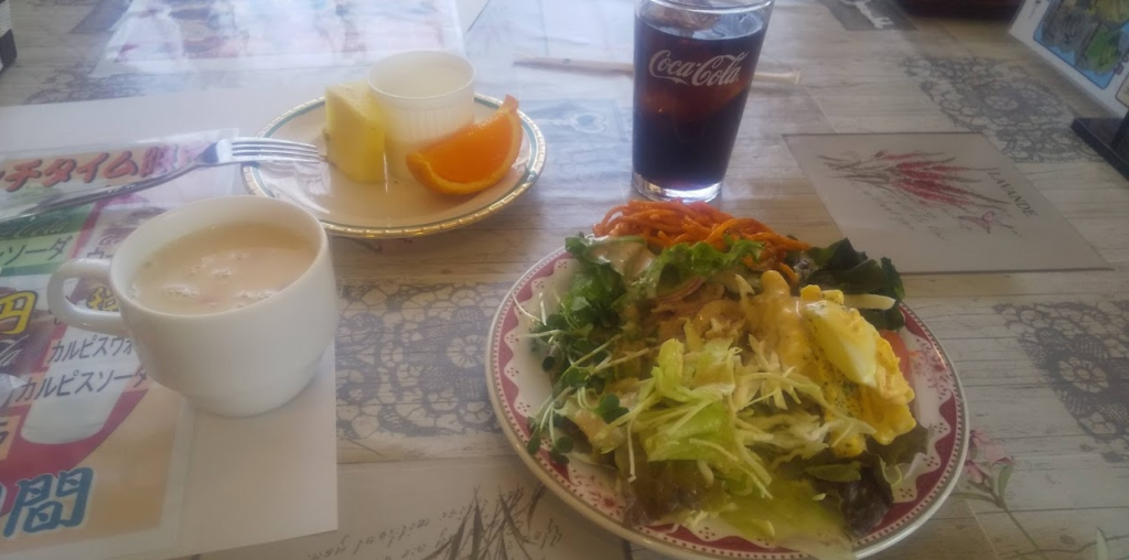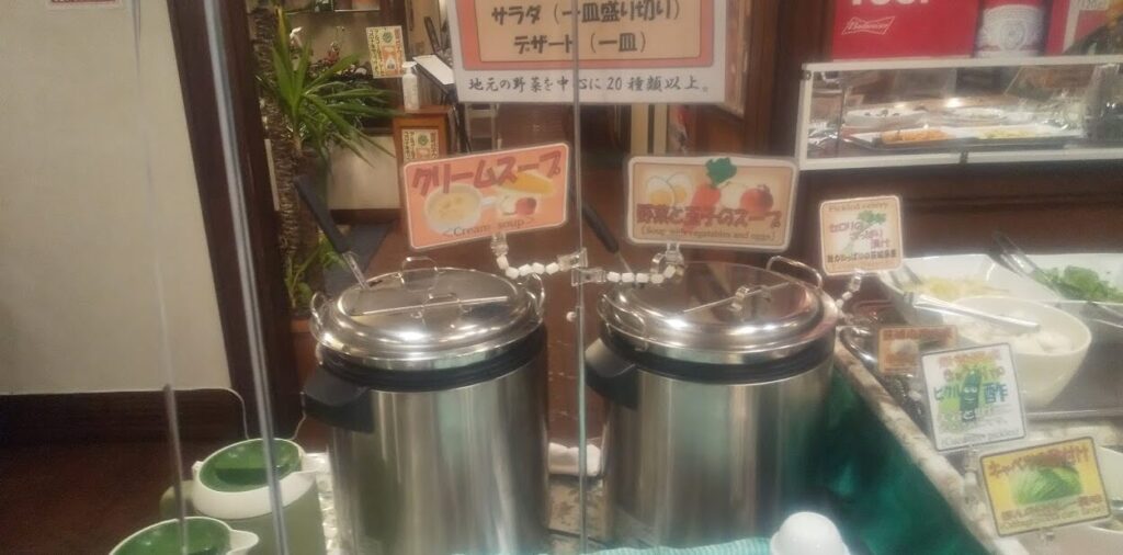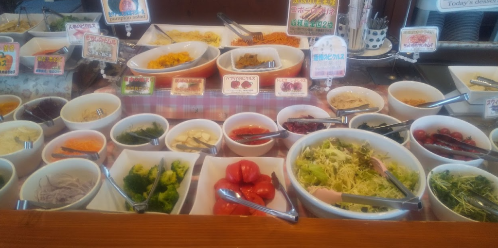 セットのサラダバー・スープバー・フルーツバーそれぞれを取り終えた後の様子。