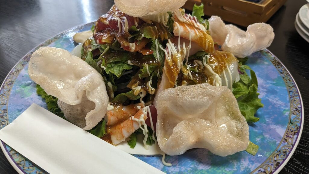 そんで海老以外に野菜系も添えられているところがなかなか見ないポイントだったり。