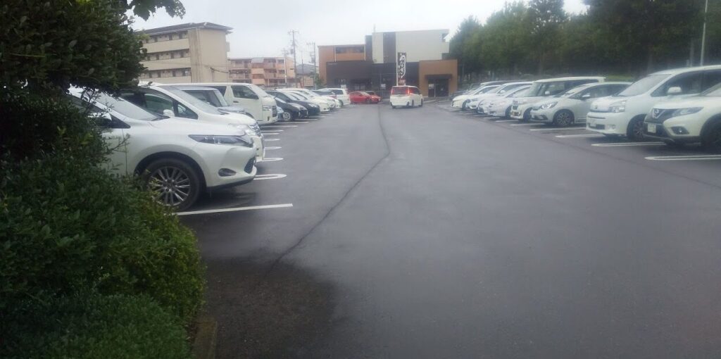 雨の降る駐車場の様子。