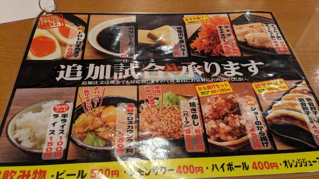 サブメニュー 僅かながらの味噌以外のラーメン系