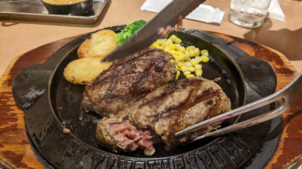 | その他の特徴 | 爆弾ハンバーグもカットは店員さんが目に前で行ってくれるサービス。 いつの間にか『爆弾ハンバーグ』から『爆ハン』と略されるようになっていた? |
