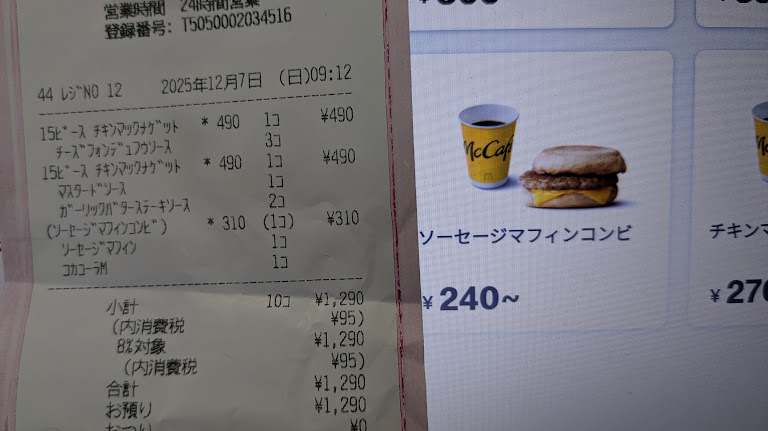 (コンビ系が初めてなんです。ソーセージマフィンとかそのセットは数え切れないくらいに食べてます☆)