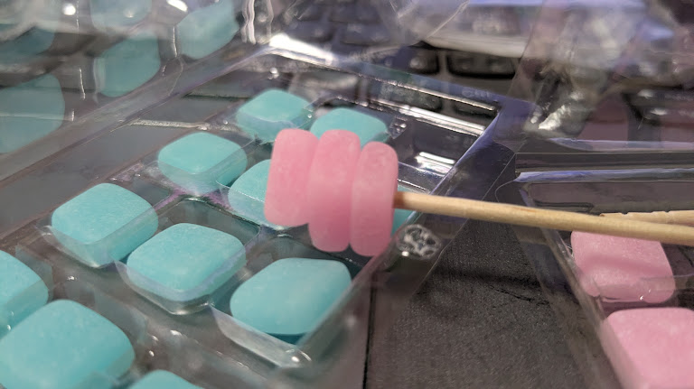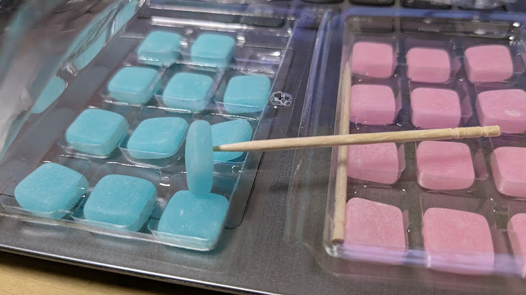 | 満足度 | ☆☆☆☆ | 小さいとはいえ、はじめは固くて温まるにつれて伸びつつ溶け消えるので、時間をかけて食べるとそれなりの満足感を覚えますね。ただし、すぐに飲み込んでしまうと満足感には程遠い量でしかありません。 |
