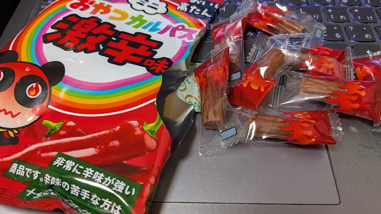 - 所詮は子供向けおやつと決めつけて口にしたら、とんでもなく辛かった。パンダに騙されるな。