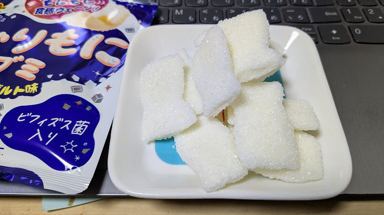 塗布されたシュガーパウダーがザクザクで、本体のやや柔らかめグミがよくマッチし、美味しい以上にとにかく驚いたことをよく覚えています。
