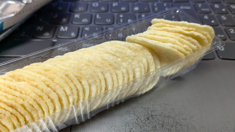 | 間食中毒性 | ☆☆☆☆ | 全種類が食べきりサイズなので、『少しだけ…』が通用しないところがネックですね。とはいえ、容器に移して密封すれば、ある程度は保存が可能です。なお、湿気てしまったポテトチップは絶妙なフニャフニャ感だったw(楽しんでる) |